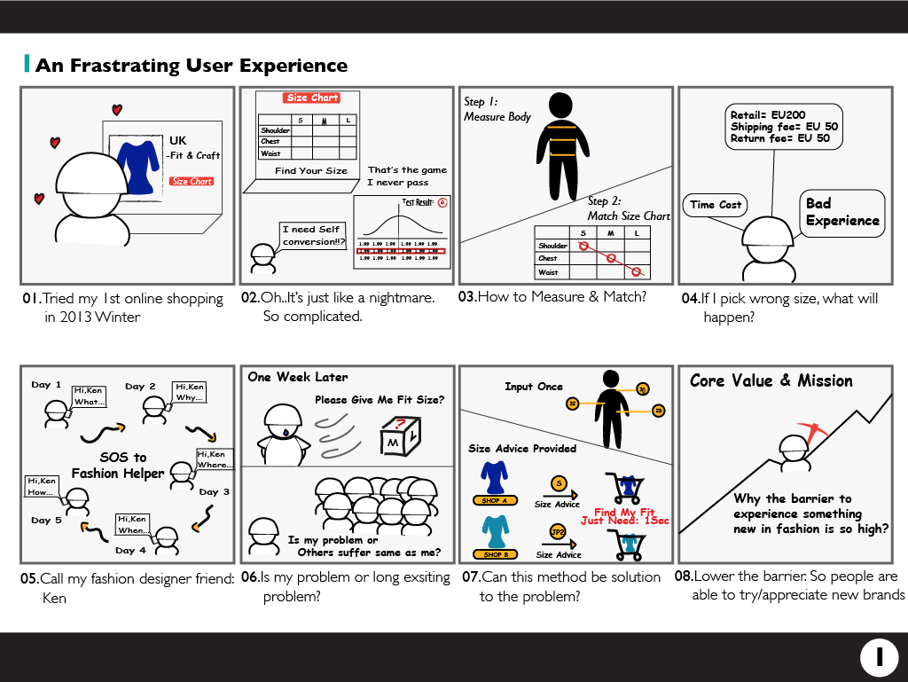 When I face unpleasant problem, I prefer to solve it instead of getting used to it. It is my self-initiate project due to a bad personal online shopping experience. Story was started from 2013, when I tried to buy a coat from the UK online shop. I found that It was very complicated to buy a best-fit clothes. I love experiencing something new. It was unacceptable that buying new fashion brands in online was so troublesome. I thought there should be a better solution. So, a fitting platform is developed.