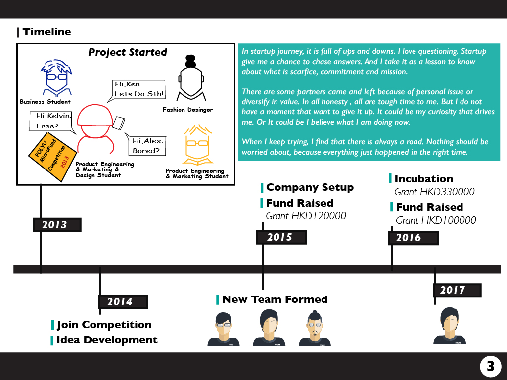 We had a new idea which was started from 2013. There were changes in team and development in business during the period. A self-reflection was recorded.