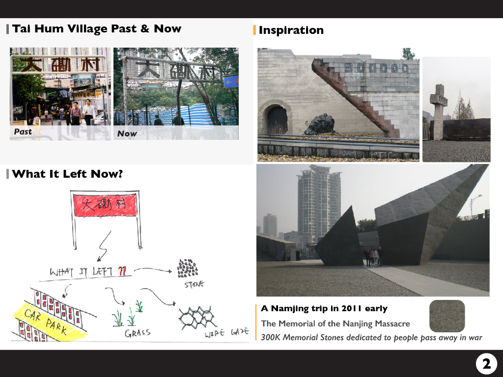 I revisited the location of Tai Hum Village after its demolition. The stones left in the area reminded me the trip of visiting The Memorial of the Nanjing Massacre. I felt so moved for the 300000 stones there being put there to commemorate 300000 people who died in the war.