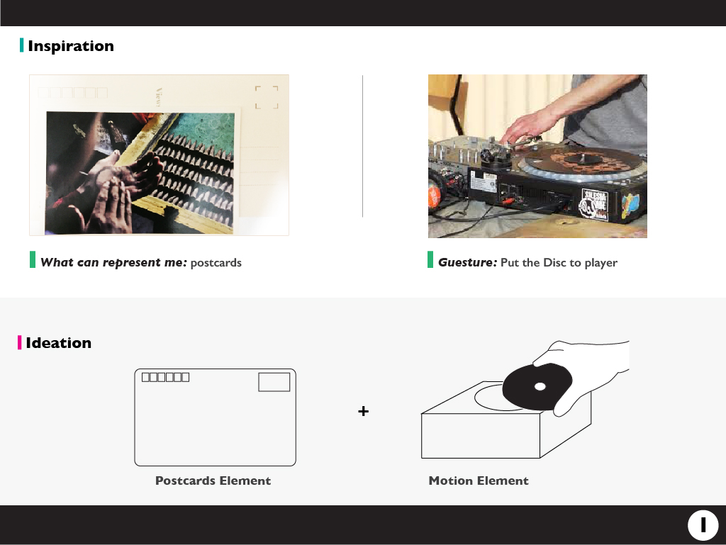 Postcard is a common souvenir to my friends each time when I travel. I use this as the inspiration of the product and to show my personality of caring. And I was interested to the motion of operating disc which symbolizes “it’s time to ON AIR”.