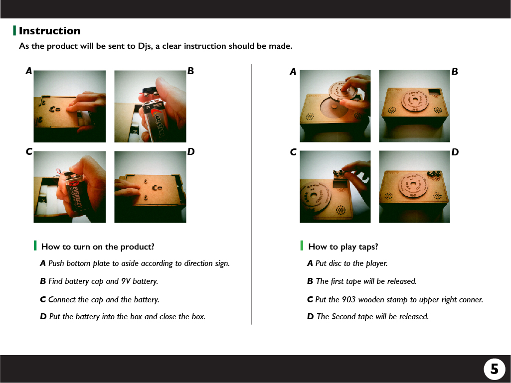 The Product is then sent to DJs. An instruction is needed to guide them to use this product.